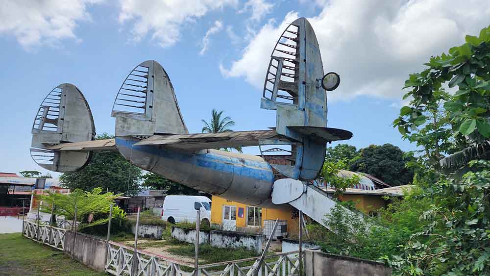 This was built out of a pair of Lockheed Super Constellation aircraft abandoned when the then Portuguese colony had been the base to break the humanitarian blockade isolating the Biafran separatists in the Nigerian civil war in the 1960s.