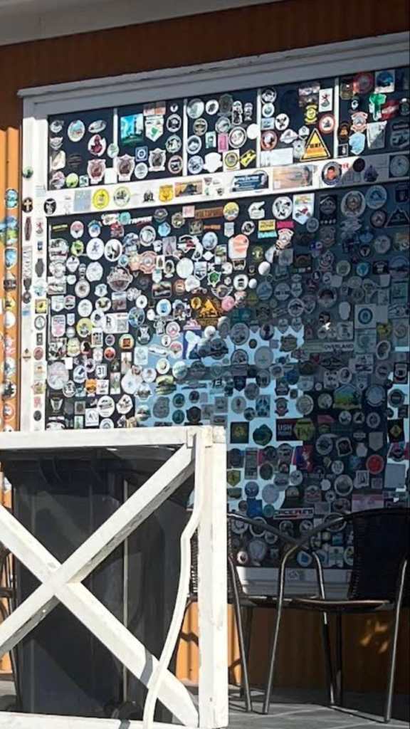 Heading much further south, a sticker was spotted on the Magellan Strait in Chile. It’s in the middle of the big window, near the sun/shade divide.
