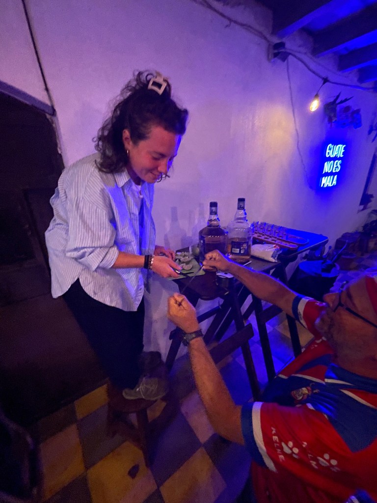The monthly Quetzaltrekkers parties have a certain notoriety around town… This is entirely because they are wonderful fundraiser events that we use to raise money for our Community Projects fund. This is a fund that is dedicated to helping the wonderful communities that we walk through on our hikes, such as buying the solar panels that we brought to Chuatuj in September!